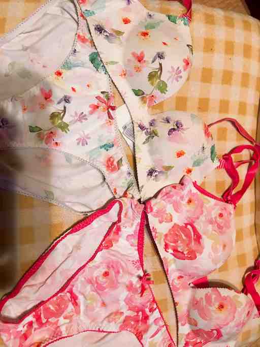お気に入りの花柄パンツ🌼 ご希望の色をチャットください! ツルツルサラサラでさわり心地いいですよ! 写真3枚目はオナニー後パンツ(/ω\) パンツ単品→1500 ブラセット→2500