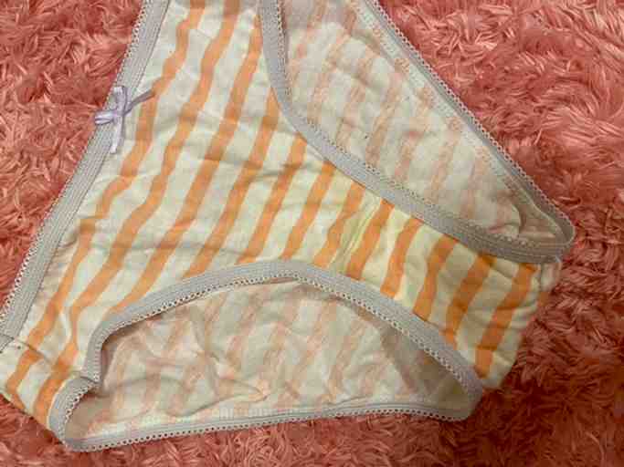着用期間★2日 愛用期間★2ヶ月 パンティーのみです★オリモノが結構ついていて黄ばんでます(^^)既に黄ばんでいて臭いけど、オプションも追加できます(^^) 綿素材なのでしっかり匂いが染み付いてます。 クロッチ部分をラップで包み、ジップロックに入れて送ります 。