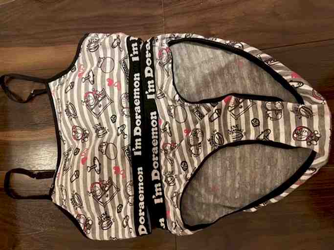 着用期間🌟7日 オリモノがベッタリついたスポブラセットです❤️ヨガやジムにも着て行ってました❤️ 柄はドラえもんのデザインで、素材は綿ですのでめちゃくちゃ匂いが染み付いてます❤️ クロッチ部分はラップで保護して、ジップロックに入れてから梱包します(๑′ᴗ‵๑)